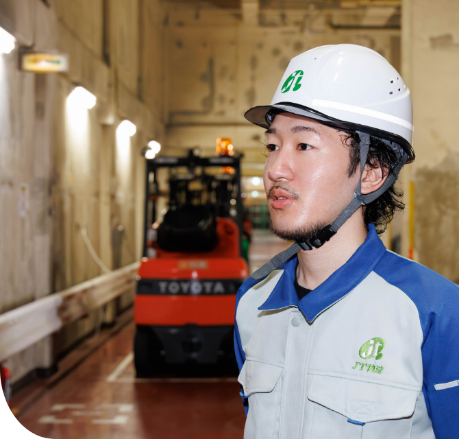 また、業務に必要な知識を深めるため、入社後にフォークリフトの運転資格を取得しました。実際に操作する機会はありませんが、現場にいるフォークマン職の業務内容を理解するうえで役に立っています。